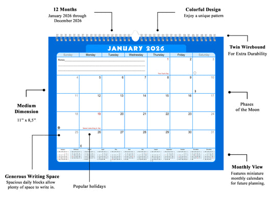 2025-2026 Monthly Spiral-Bound Wall / Desk Calendar - Desktop / Wall Blotter Calendar / Planner - (Edition #15)Vendor:Pelican IndustrialRegular price From $11.99 USDRegular priceUnit price per-