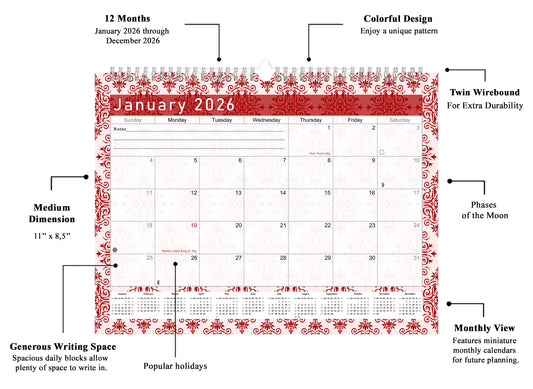 2025-2026 Monthly Spiral-Bound Wall / Desk Calendar - Desktop / Wall Blotter Calendar / Planner - (Edition #01)Vendor:Pelican IndustrialRegular price From $11.99 USDRegular priceUnit price per