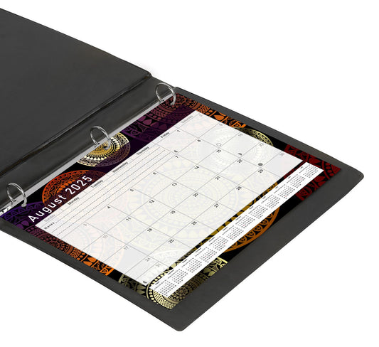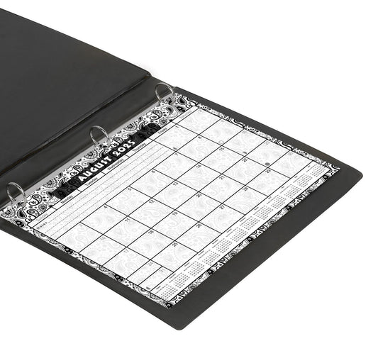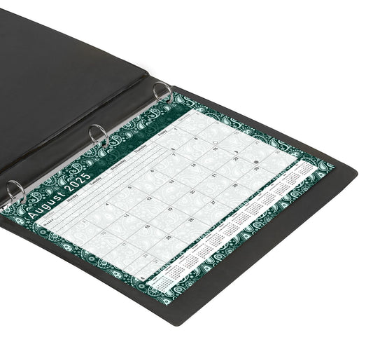 2025 - 2026 Academic Year 12 Months Student Calendar / College Planner for 3-Ring Binder, Desk or Wall -School Supplies - Made in USA - (Black & White Paisley Edition #010)