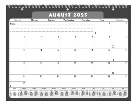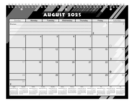 2025 - 2026 Academic Year 12 Months Student Calendar / College Planner for 3-Ring Binder, Desk or Wall -School Supplies - Made in USA - Black&White - (Edition #014)