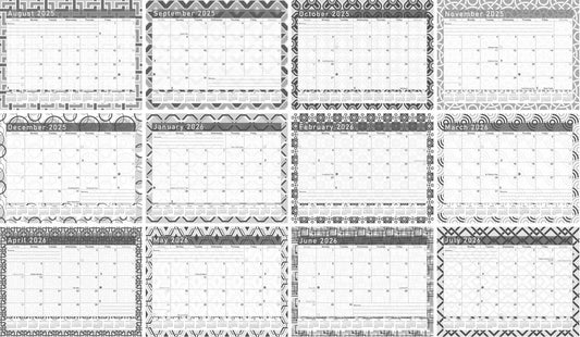 2025 - 2026 Academic Year 12 Months Student Calendar 3-Ring Binder - Black&White - (Edition #012)