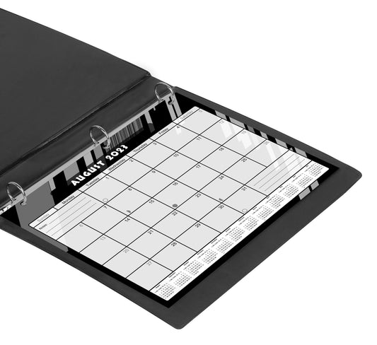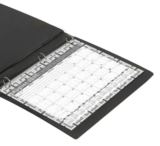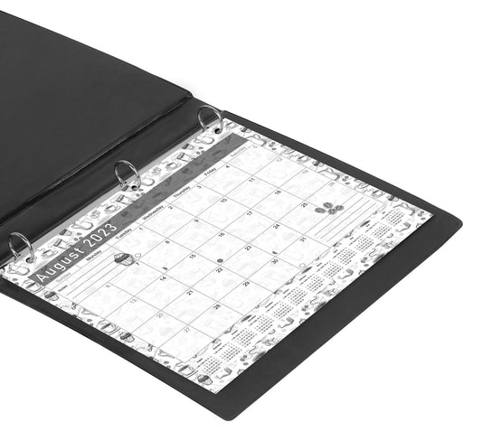 2023-2024 Academic Year 12 Months Student Calendar/Planner in Protective Sleeve for 3-Ring Binder, Desk or Wall - Black&White -v012