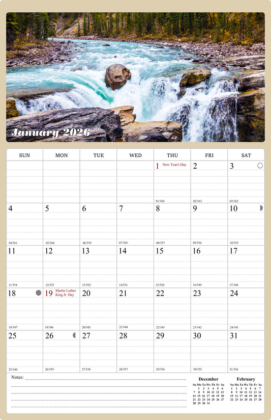 2026 Wall Calendar Spiral-bound Twin-Wire Binding - 12 Months Planner - Large Ruled Blocks with Julian Dates - (The Great Outdoors)