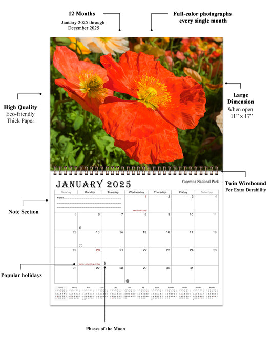 2025 Spiral-bound Wall Calendar (National Parks) - 12 Months Desktop/Wall Calendar/Planner (Copy) (Copy)