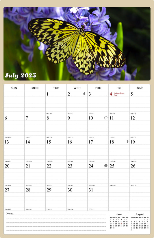2026 Wall Calendar Spiral-bound Twin-Wire Binding - 12 Months Planner - Large Ruled Blocks with Julian Dates - (Butterfly)