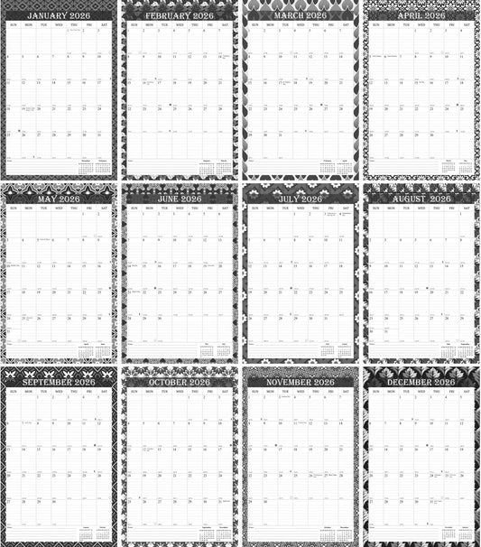 2026 Wall Calendar Spiral-Bound Twin-Wire Binding - 12 Months 08 B&W