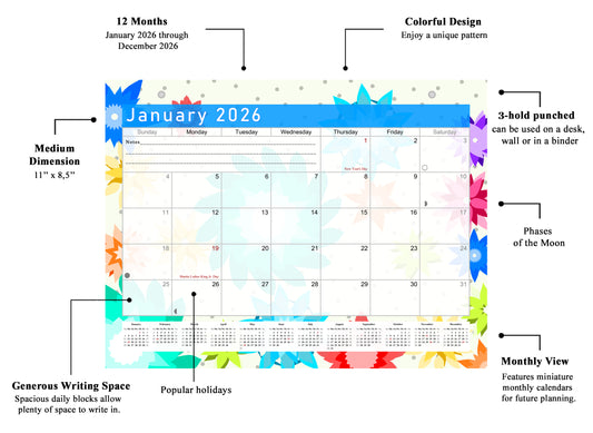 2025 - 2026 Student Calendar/Planner for 3-Ring Binder, Desk, or Wall - v013