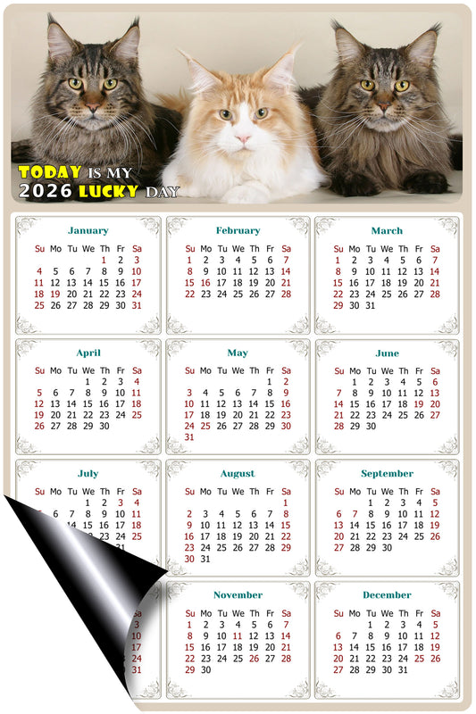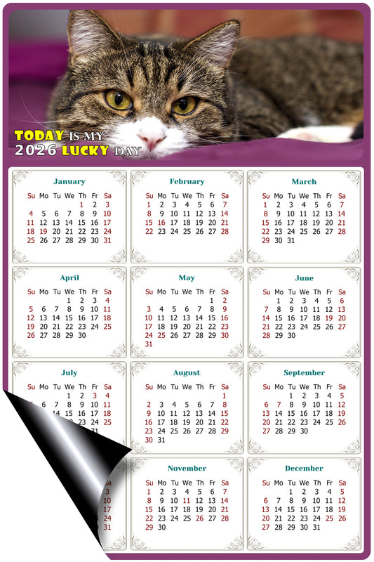 2026 Magnetic Calendar - Today is My Lucky Day (Fade, Tear, and Water Resistant)- Cat Themed 020