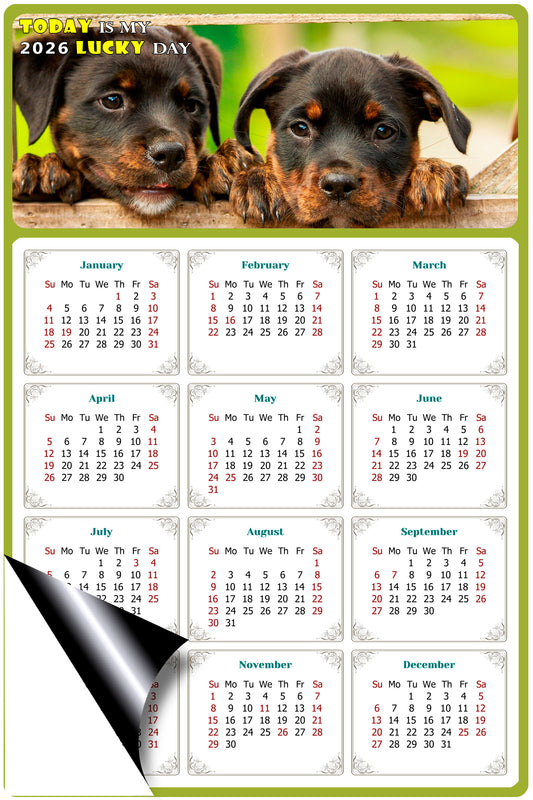 2026 Magnetic Calendar - Today is My Lucky Day (Fade, Tear, and Water Resistant)- Dogs Themed 01