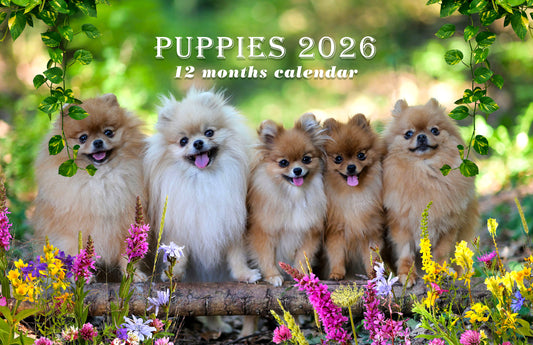 2026 Spiral-bound Wall Calendar (Puppies) - 12 Months Desktop/Wall Calendar/Planner