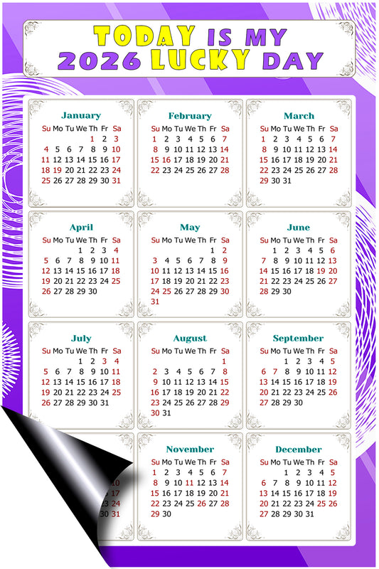 2026 Magnetic Calendar - Calendar Magnets - Today is my Lucky Day - (Fade, Tear, and Water Resistant) - Themed 01