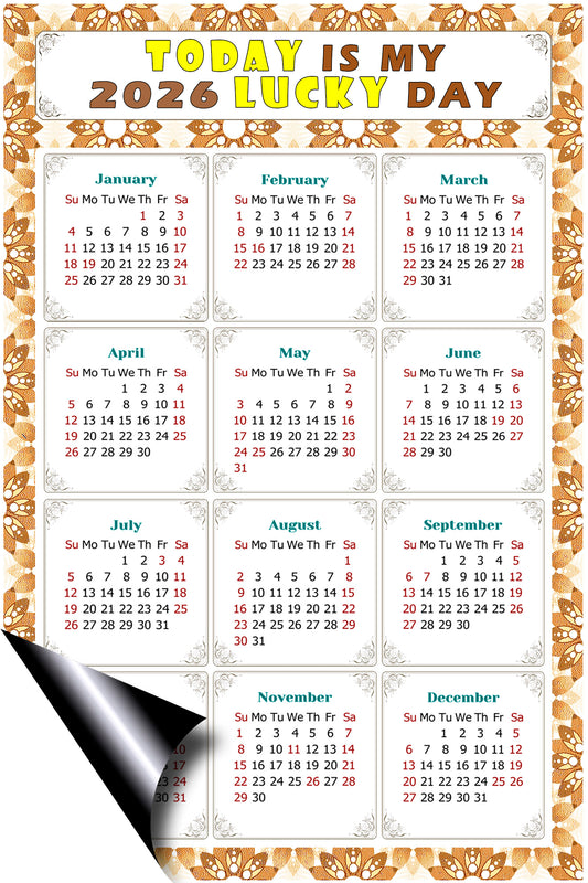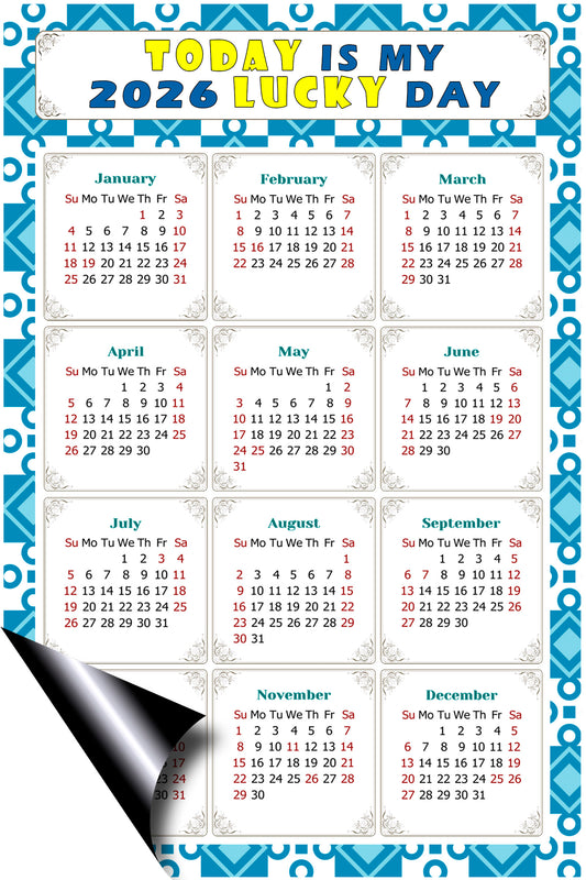 2026 Magnetic Calendar - Calendar Magnets - Today is my Lucky Day - (Fade, Tear, and Water Resistant) - Themed 038