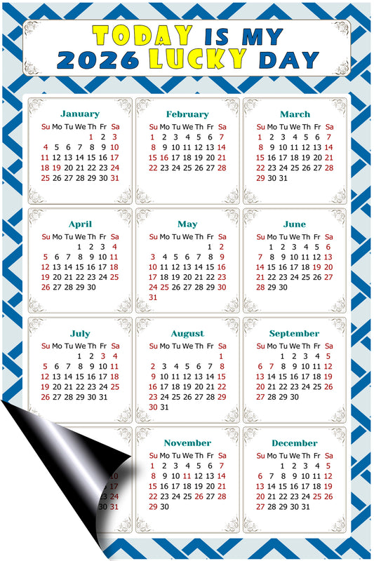 2026 Magnetic Calendar - Calendar Magnets - Today is my Lucky Day - (Fade, Tear, and Water Resistant) - Themed 033