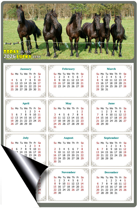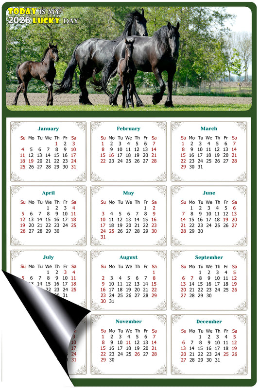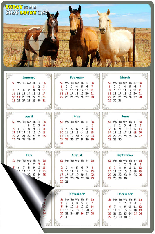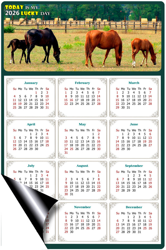 2026 Magnetic Calendar - Calendar Magnets - Today is my Lucky Day - (Fade, Tear, and Water Resistant) - Horses Themed 03