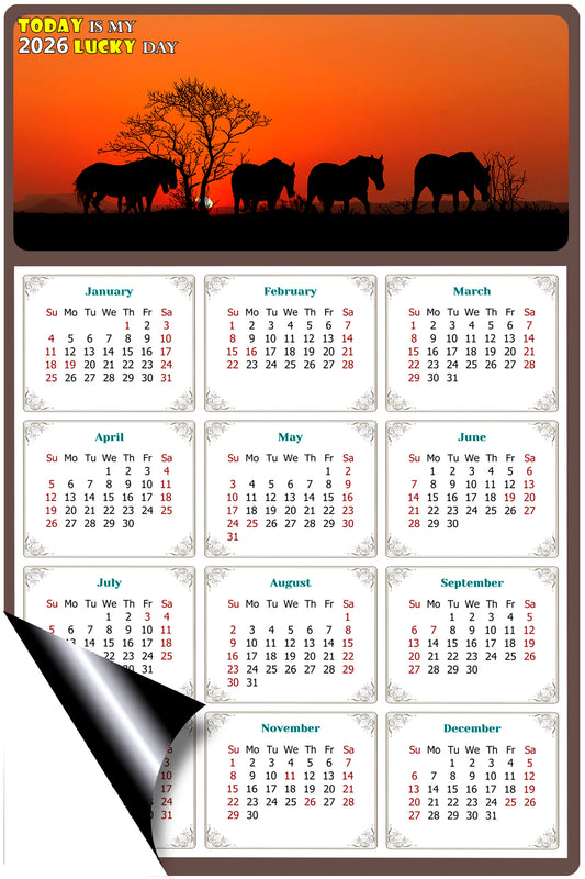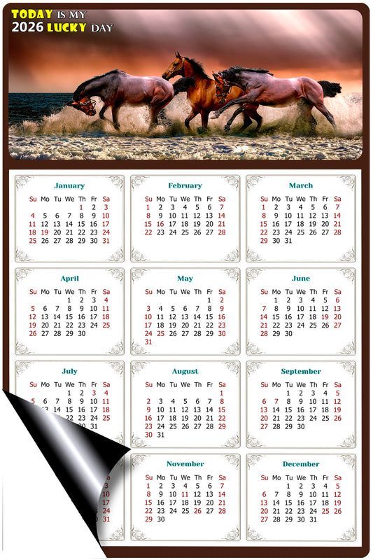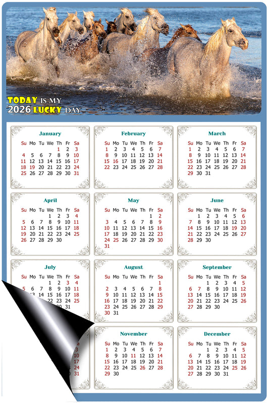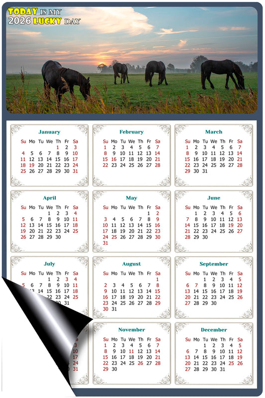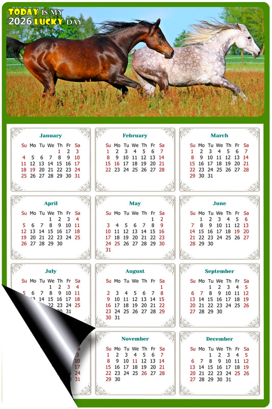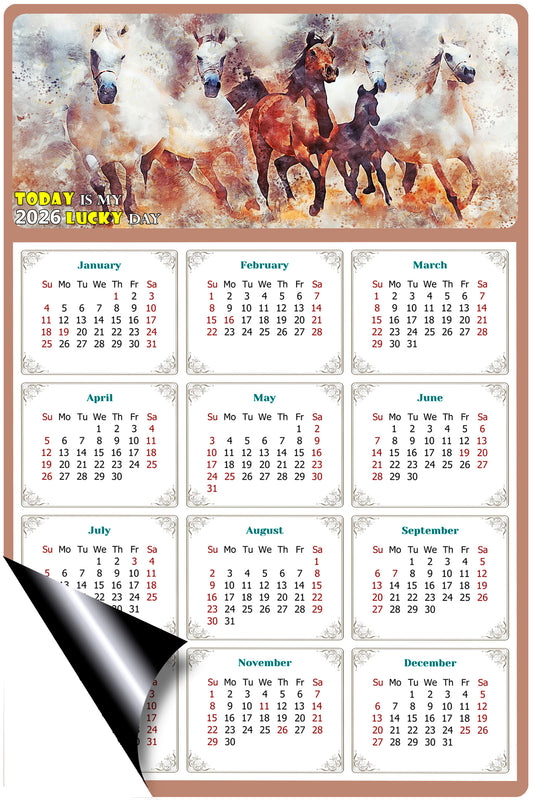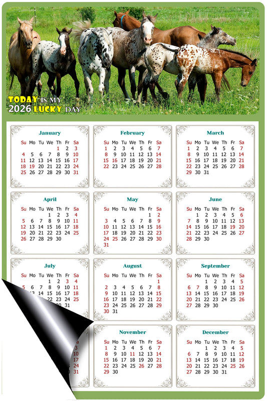 2026 Magnetic Calendar - Calendar Magnets - Today is my Lucky Day - (Fade, Tear, and Water Resistant) - Horses Themed 011