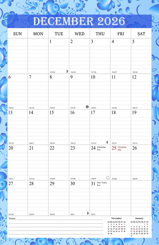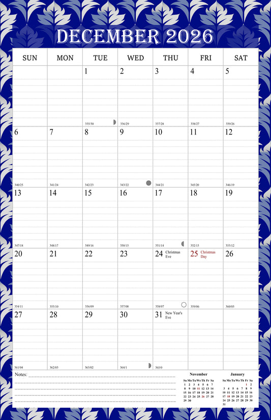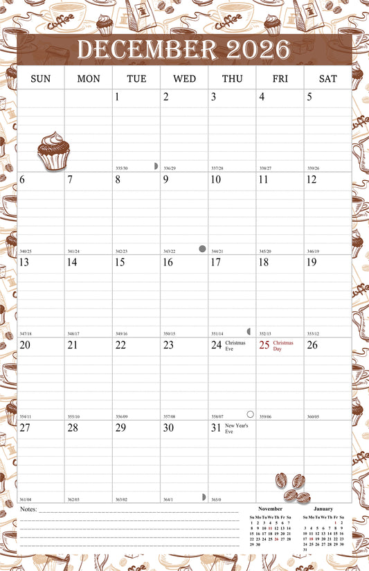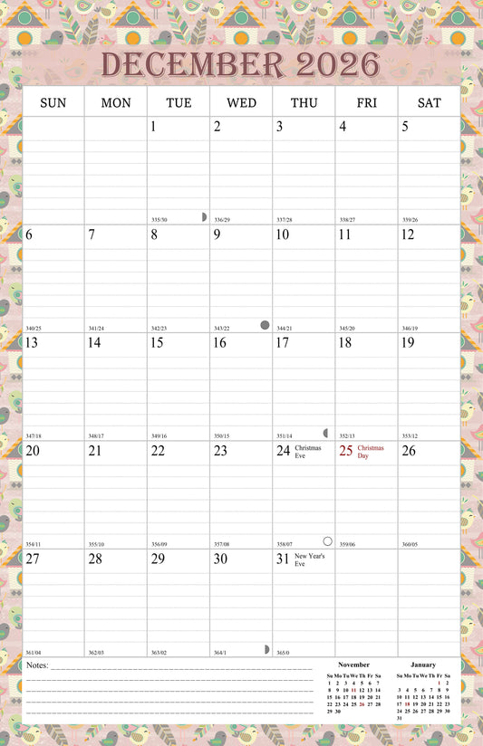 2025-2026 Wall Calendar Spiral-bound Twin-Wire Binding - 18 Months 11" x 17" 014