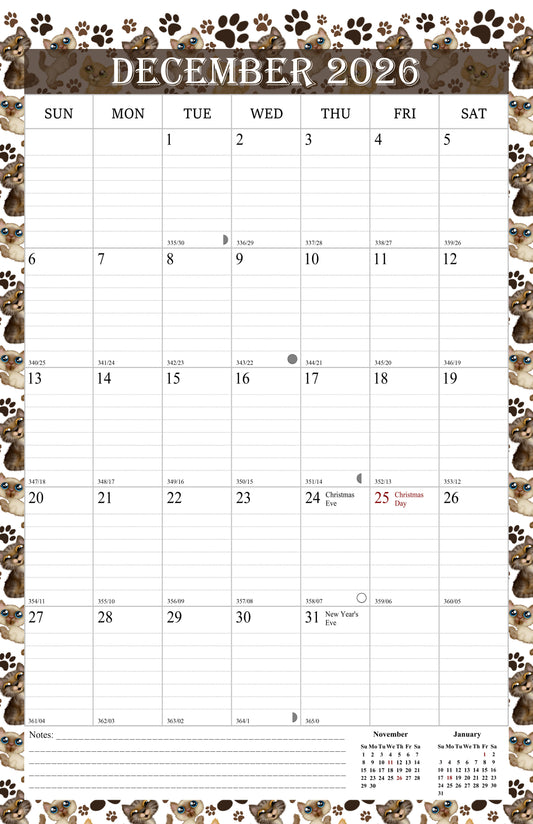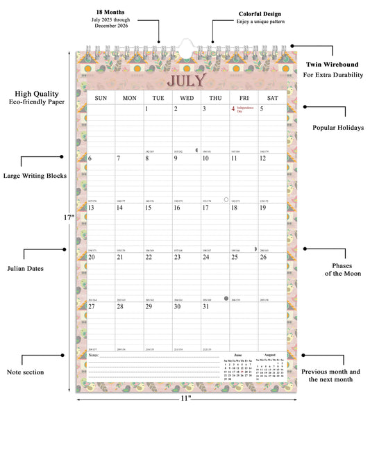 2025-2026 Wall Calendar Spiral-bound Twin-Wire Binding - 18 Months 11" x 17" 013