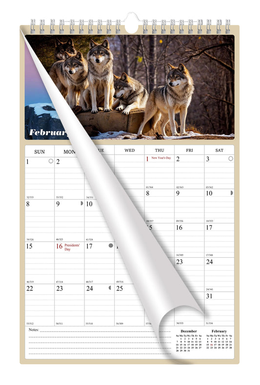 2026 Wall Calendar Spiral-bound Twin-Wire Binding - 12 Months Planner - Large Ruled Blocks with Julian Dates - (Woolfs)