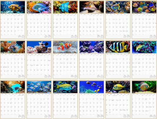 2025 - 2026 Wall Calendar Spiral-bound Twin-Wire Binding - 18 Months Planner - Large Ruled Blocks with Julian Dates - (Tropical Fishes)