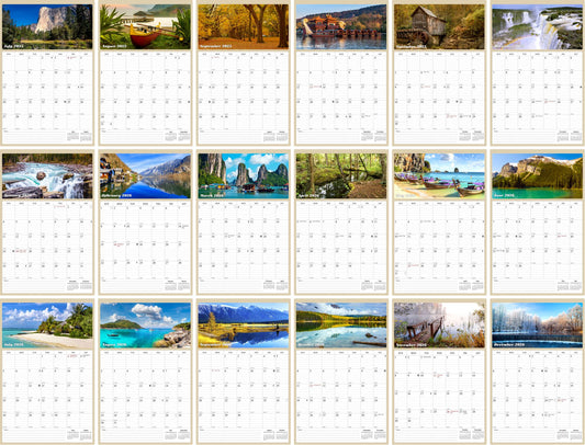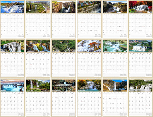 2025 - 2026 Wall Calendar Spiral-bound Twin-Wire Binding - 18 Months Planner - Large Ruled Blocks with Julian Dates - (Waterfalls)