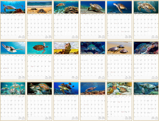 2025 - 2026 Wall Calendar Spiral-bound Twin-Wire Binding - 18 Months Planner - Large Ruled Blocks with Julian Dates - (Turtles)