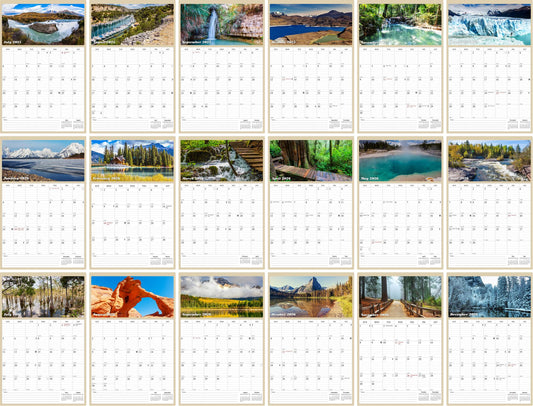 2025 - 2026 Wall Calendar Spiral-bound Twin-Wire Binding - 18 Months Planner - Large Ruled Blocks with Julian Dates - (National Parks)