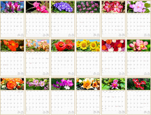 2025 - 2026 Wall Calendar Spiral-bound Twin-Wire Binding - 18 Months Planner - Large Ruled Blocks with Julian Dates - (Flowers)