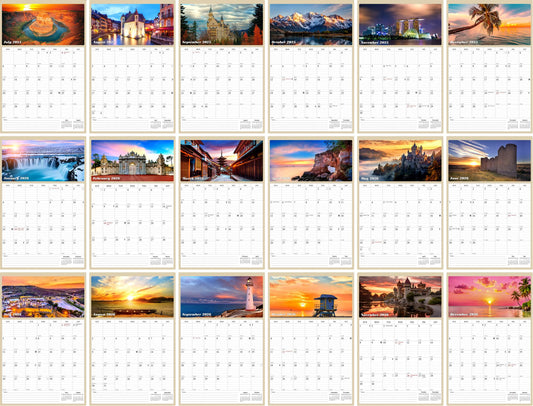 2025 - 2026 Wall Calendar Spiral-bound Twin-Wire Binding - 18 Months Planner - Large Ruled Blocks with Julian Dates - (Sunset&Sunrise)