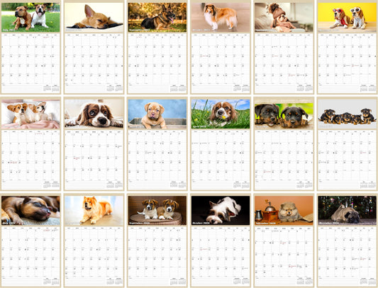 2025 - 2026 Wall Calendar Spiral-bound Twin-Wire Binding - 18 Months Planner - Large Ruled Blocks with Julian Dates - (Dogs)