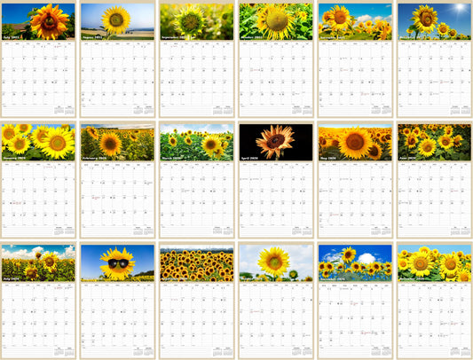 2025 - 2026 Wall Calendar Spiral-bound Twin-Wire Binding - 18 Months Planner - Large Ruled Blocks with Julian Dates - (Sunflowers)