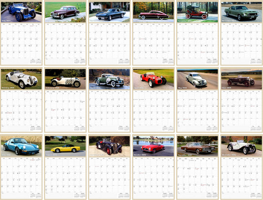 2025 - 2026 Wall Calendar Spiral-bound Twin-Wire Binding - 18 Months Planner - Large Ruled Blocks with Julian Dates - (Classic Cars)