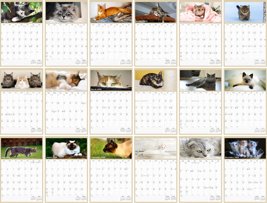 2025 - 2026 Wall Calendar Spiral-bound Twin-Wire Binding - 18 Months Planner - Large Ruled Blocks with Julian Dates - (Cats)