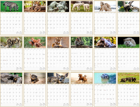 2025 - 2026 Wall Calendar Spiral-bound Twin-Wire Binding - 18 Months Planner - Large Ruled Blocks with Julian Dates - (Baby Animals)