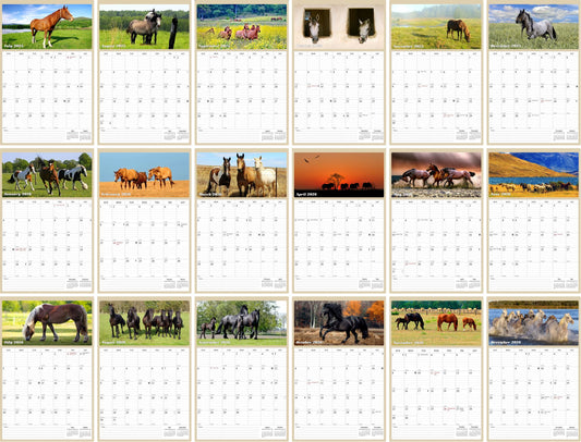 2025 - 2026 Wall Calendar Spiral-bound Twin-Wire Binding - 18 Months Planner - Large Ruled Blocks with Julian Dates - (Horses)