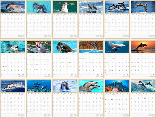 2025 - 2026 Wall Calendar Spiral-bound Twin-Wire Binding - 18 Months Planner - Large Ruled Blocks with Julian Dates - (Dolphins)