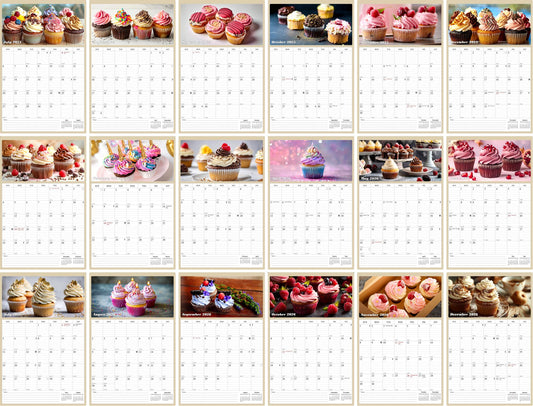 2025 - 2026 Wall Calendar Spiral-bound Twin-Wire Binding - 18 Months Planner - Large Ruled Blocks with Julian Dates - (Cupcakes)