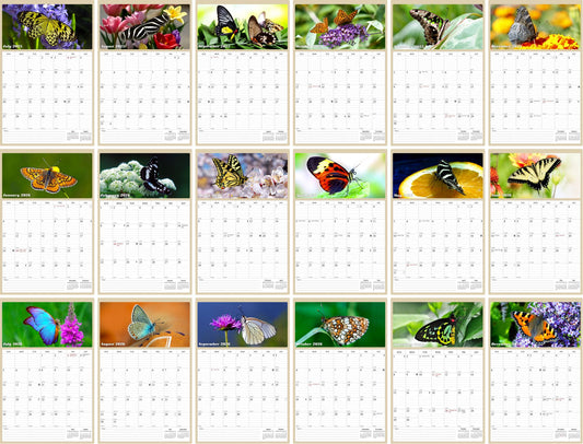 2025 - 2026 Wall Calendar Spiral-bound Twin-Wire Binding - 18 Months Planner - Large Ruled Blocks with Julian Dates - (Buterflyes)