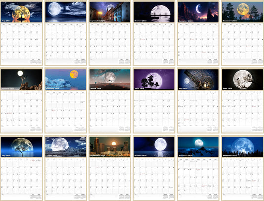 2025 - 2026 Wall Calendar Spiral-bound Twin-Wire Binding - 18 Months Planner - Large Ruled Blocks with Julian Dates - (Lunar)