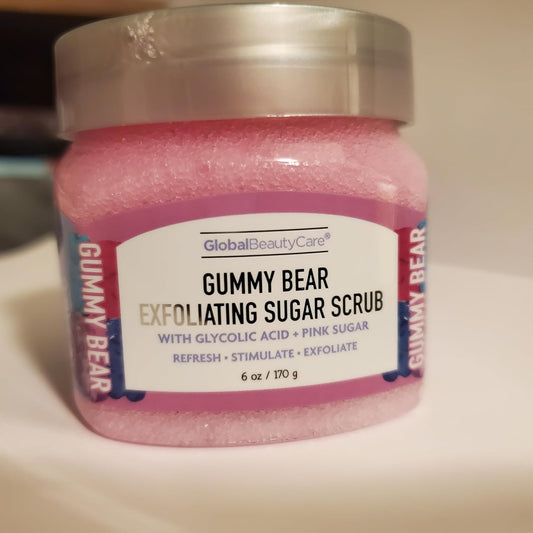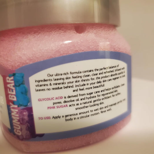 Gummy Bear Exfoliating Sugar Scrub with Glycolic Acid + Pink Sugar, Gummy Bear