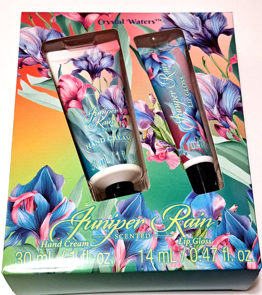 Crystal Waters Hand Cream & Lip Gloss - Juniper Rain 30ml/1fl oz (Set of 2 Pack)
