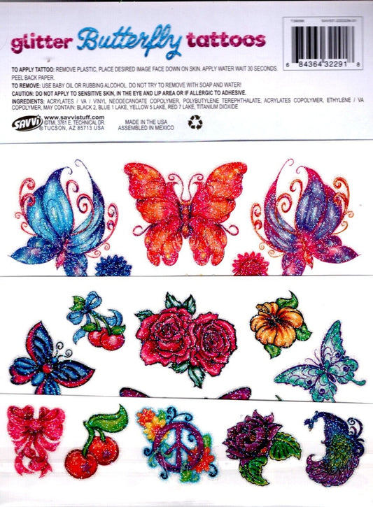 Savvi - Butterfly - 25 Glitter Tattoos