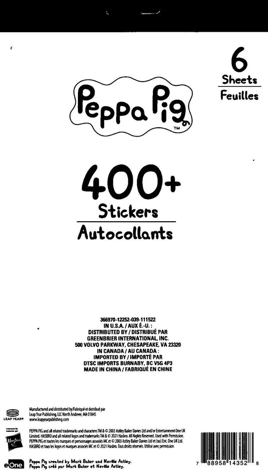400+ Fun Stickers - Peppa Pig 6 Sheets (Set of 2 Pack)