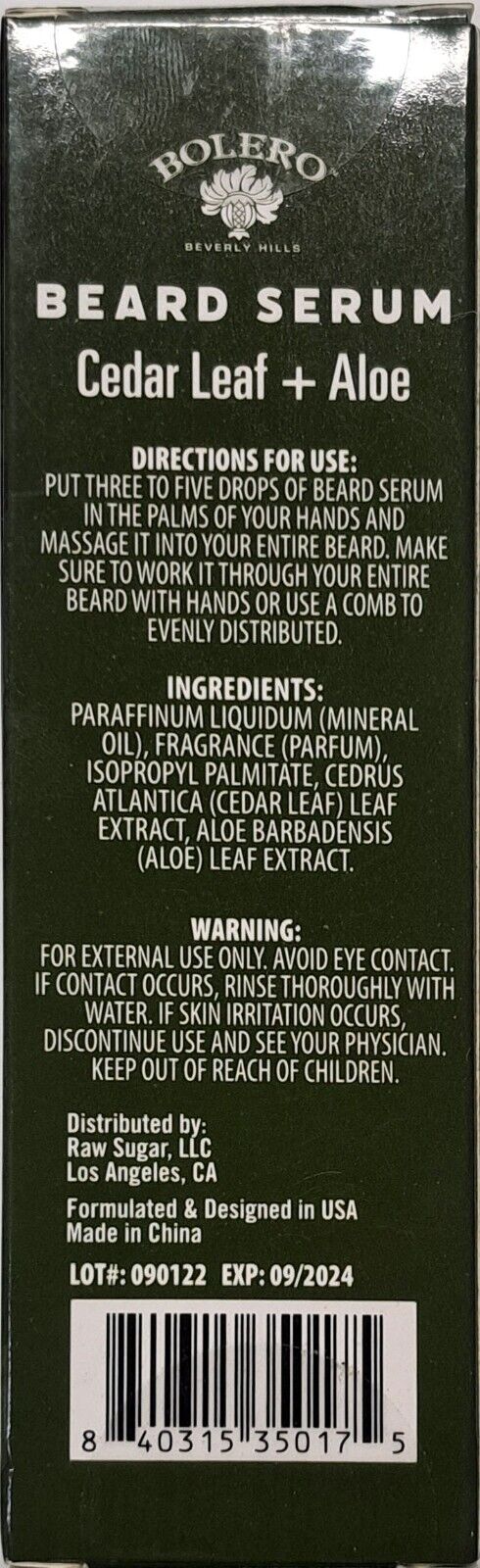 Bolero Beverly Hills Men`s Refresh Beard Serum - Cedar Leaf & Aloe 0.5fl oz