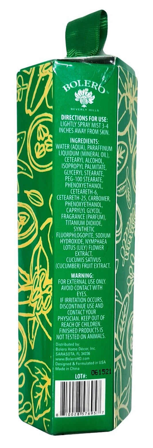 Bolero Beverly Hills Hydrating Lotion Mist - Water Lily & Cucumber 2fl oz Set