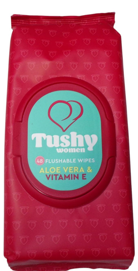 Tushy Women 48 Flushable Wipes Aloe Vera Vitamin E (Set of 2 Pack)