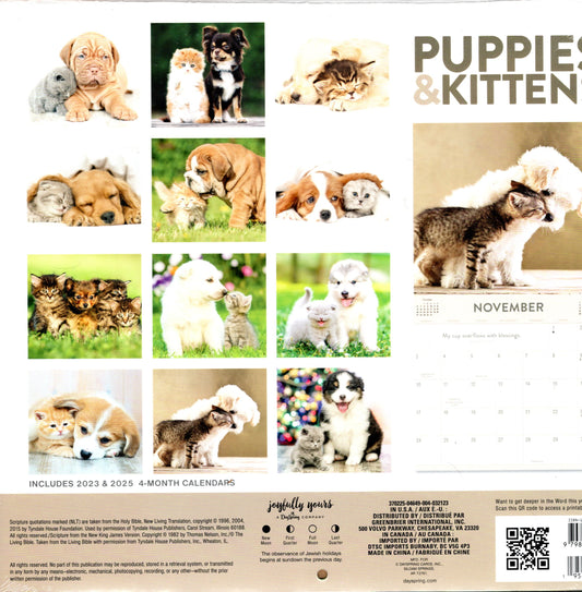 2024 Puppies & Kitten Full Size Wall Inspirational Calendar for Planning