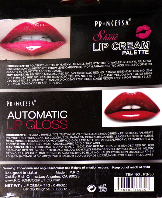 Princess Lip Cream 8 Color Automatic Palette Lip Gloss Shine Blast