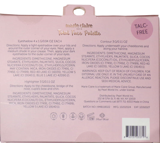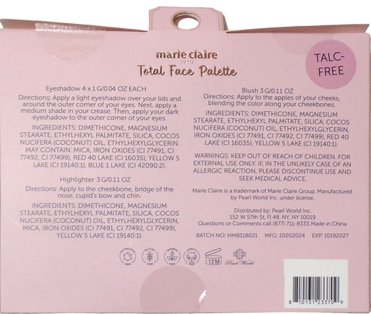 Marie Claire Paris Natural Charm Total Face Palette~Highlighter~Eyeshadow~ Blush
