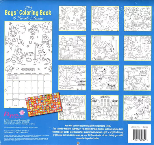Boys' Coloring Book 2015 Wall Calendar with Stickers