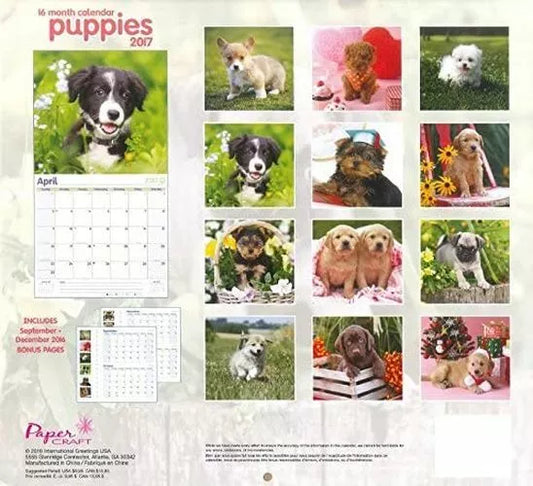 Puppies 2017 Organizer Scheduler Appointment Book Wall Calendar (16 Month)
